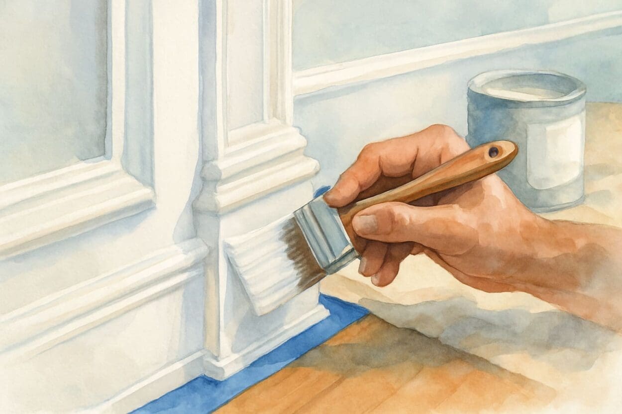 Painting a flat wall is straightforward. Painting detailed trim requires a steady hand and a lot of patience. We have to tape off areas precisely, caulk gaps where the trim meets the wall, and sand down the wood to ensure the new paint bonds.