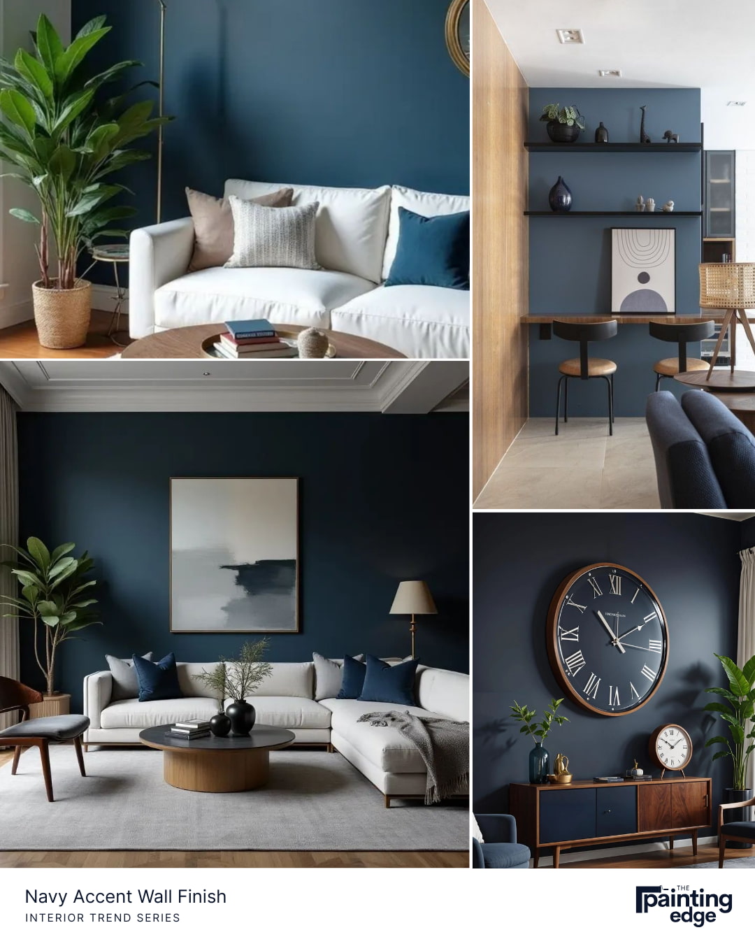 However, the success of a navy accent wall often depends on factors like natural light, room size, and existing furnishings. In spaces with ample natural light, navy can feel dramatic yet welcoming. In darker rooms, it might create a more enclosed atmosphere which could be either cozy or confining, depending on your preferences.